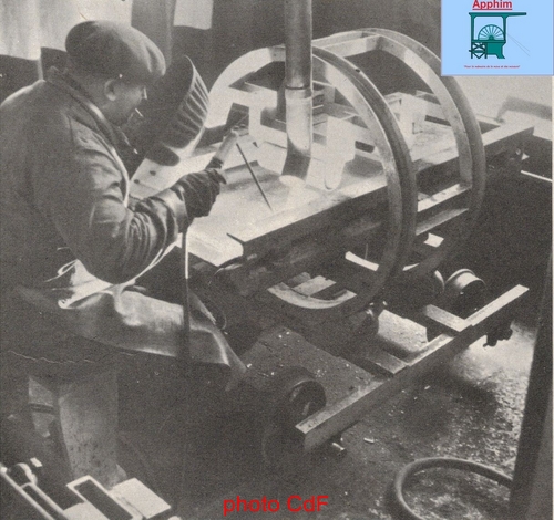 -La soudure : 5 postes de soudure alimentés par un poste central assurent cette fonction. Les bacs sont placés de manière à effectuer une soudure à plat. Les soudures se font à l'arc électrique avec un jeu de gabarits pour permettre un contrôle rapide et efficace. Une cheminée équipe le poste.