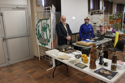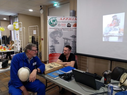 Le stand de l’APPHIM a été tenu par Jean-Louis HUOT, André DIEU et Mathias TOTH mais aussi par Marie-Josèphe DELVALLEZ, Jean-Marie BERNARD et Dominique IANNONE. Nous avons présenté un peu de matériel, des livres et des revues concernant la mine à Courrières. Tous les visiteurs s’arrêtant à notre stand n’ont pas manqué de nous questionner sur nos activités. André a été sollicité par une enseignante de Libercourt afin d’intervenir dans son école, des visiteurs ont reçu des réponses à leurs questions, des enfants (et adultes) se sont pris au jeu de la photo dans notre galibot. Une bien belle journée ! Un grand merci à tous nos visiteurs, à nos adhérents présents et un grand bravo au service fêtes et manifestations de la ville de Courrières.