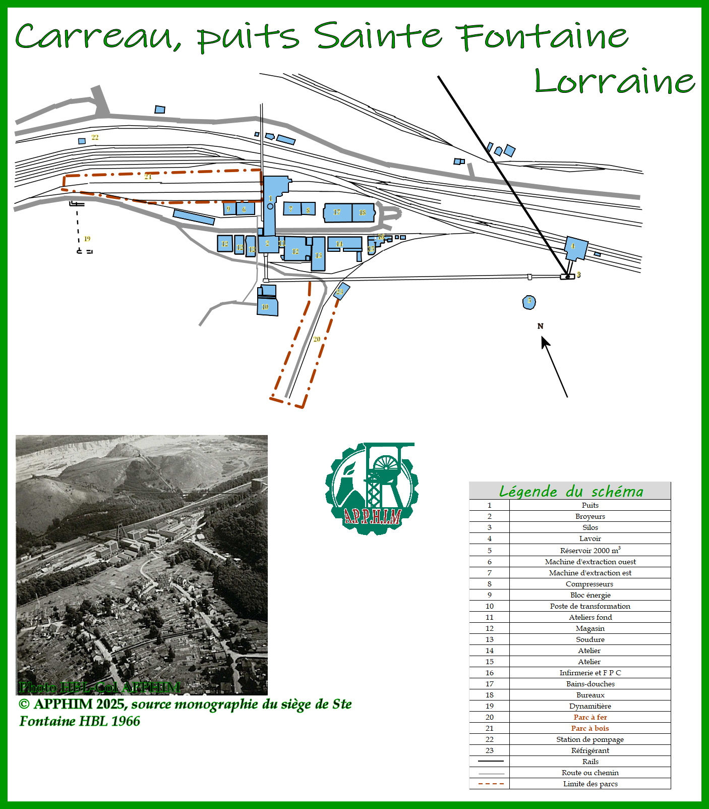 La Lorraine Lorraine Siège Simon I et II Puits Peyerimhoff, siège de Sainte-Fontaine Mots-clés associés plans Mines de Ligny les airesMines de BéthuneMines de LiévinMines de LensMines de CourrièresMines de DrocourtMines de DourgesMines d'OstricourtMines d'AnicheMines d'AnzinMines de VicoigneLa cokerieLa centrale thermiqueCartographieCatastrophe de CourrièresInstallations minièresMatériel du mineur schémas Mines de Ligny les airesMines de BéthuneMines de LiévinMines de LensMines de CourrièresMines de DrocourtMines de DourgesMines d'OstricourtMines d'AnicheMines d'AnzinMines de VicoigneLa cokerieLa centrale thermiqueCartographieCatastrophe de CourrièresInstallations minièresMatériel du mineur apphim Généralités Généralités Historique Les installations Les installations détruites Généralités Historique Les installations Généralités-historique Généralités-Historique Local concierge-Logement du gardien Historique Le classement Bilan de l'actionLe musée de la mine de Noeux les MinesLe musée de la mine de BruayLe musée de la mine d'AuchelL'historiqueLe sitePhotosLa demande de classementBilan de l'actionLe logement du gardeLa lampisterieLes bureauxL'atelier-magasinFin d'actionLes Bains DouchesLa chaufferieSalle des machines du puits 2Les Murs d'enceinteLes bureaux ateliers magasinsDossier de classementLettre du Président à la DRACRencontre avec M le Maire de HarnesRevue de PressePréambuleProductions par fossesProductions par groupesManutention des charbonsL'épuration de l'eau d'appointNos courriers-Presse-Fin d'actionLa tranche 3Les tranches 1 et 2Fin de notre actionAssemblée GénéraleAchats de livresRepas de Sainte BarbeAchats et donsDonsCommémoration de la catastrophe de LiévinVoeux 2014Historique généralLocalisation et historique du siteLa proposition de classementAcquisitions et donDon de livreActivités de fin de moisCommémoration de la catastrophe de CourrièresRencontre de Jean-Marie MinotMines de Ligny les airesMines de BéthuneMines de LiévinMines de LensMines de CourrièresMines de DrocourtMines de DourgesMines d'OstricourtMines d'AnicheMines d'AnzinMines de VicoigneLa cokerieLa centrale thermiqueCartographieCatastrophe de CourrièresInstallations minièresMatériel du mineurAu revoir AndréRepas de Sainte BarbeMusée de la mine du Molay LittryLe bassin minier au coeur des conflitsAchats et donsFin d'actionExposition Apphim "la mine et les mineurs"La maison du mineur La Grand CombeInauguration de l'exposition à MervilleLe pôle historique minier GréasqueRencontre avec Jean Luc LoyerHistoriqueEtat des lieux en 2014Objets de la demandePresseRepas de Sainte BarbeMarché de noël CourrièresL'A.P.P.H.I.M se recueille à LiévinConférence mineurs du monde fin du charbonMusée du puits CouriotLes terrils Conférence Mineurs du mondeMusée de la Mine-Image de la Motte d'AveillansMusée Marcel Maulini RonchampLe musée de la mine de Grande SyntheConférence mineurs du monde rivage de GayantRepas de Sainte BarbeL'A.P.P.H.I.M sur le marché de Noël de CourrièresRencontre APPHIM / foyer Guy MolletLe château du 9/9bis d'OigniesMusique et MineUn ancien mineur à l'écoleLens, 200 ans de métamorphose!Musée de la Mine de Buxières (03)Musée de la Mine Saint Eloy (63)Musée de la Mine de Messeix (63)Maquette de la Fosse 9 Louvre-LensConférence de l’Association DC 3 de DROCOURT sur la fabrication du coke dans l’espace Aquaterra du Parc des Îles d’HÉNIN-BEAUMONT - 24 juin 2016Musée de la Mine Blanzy (71)L'ANGDMSortie sur le terril 14 AuchelFin d'actionRepas de Sainte BarbeMarché de Noël CourrièresUne collection de tableaux offerte à l'APPHIML'épopée des gueules noires France 2Vacances de Mineurs au 9/9bisConférence SGN au CHMAndré de Marles 3 ans déjà!76ème anniversaire de la grève de 1941Repas de Sainte BarbeAssemblée Générale ACCCUSTO-SECICatastrophe ferroviaire de ThumeriesInauguration maquette cokerie DrocourtDisparition d'Olivier KOURCHIDExposition archéologie minière au 9/9bisBanquet de Sainte BarbeRemise en route des machines du 9/9bisCommémoration Liévin 2018Une journée à l'école Marmottan de BruayUn mineur à EsquerchinListing des mineurs de nos archivesBanquet de Sainte BarbeSainte Barbe à Estevelles L'APPHIM en classe maternelleFuturs galibotsRue basse, rue hauteUn après-midi à l'EHPADUn goûter à l'EHPADBanquet de Sainte BarbeVernissage de l'exposition Sainte BarbeBanquet 2022Vernissage de l'exposition Mines de FemmesMines de l'EscarpelleExpo et ateliers, "Courrières la mine"Commémoration de la catastrophe du 10 mars 1906Forum des associations à Courrières (62)Banquet de Sainte Barbe 2025Planches d'exposition (hors expos APPHIM) Date de création : 02/04/2014 10:12 Dernière modification : 22/12/2025 14:08 Catégorie : L'asso et ses actions - Travail de recherche Apphim-Plans et schémas Page lue 8683 fois Généralités Partenaires Adhésion et dons Graines de Galibots Hommage de l'APPHIM aux morts du 10 mars 1906 Ecole Jules Ferry, Rouvroy Un grand mineur en maternelle Forum des associations à Courrières (62) Téléthon 2025 Banquet 2024 50ème anniversaire de la catastrophe de Liévin Banquet de Sainte Barbe 2025 L'épopée des gueules noires France 2 Vacances de Mineurs au 9/9bis Conférence SGN au CHM André de Marles 3 ans déjà! Norbert Gilmez, un mineur à l'honneur 76ème anniversaire de la grève de 1941 UNESCO, 5 ans, des sites en péril AG Université Populaire Mineurs du Monde Journées européennes du patrimoine à la fosse 9 Noeux les Mines pendant la grande guerre Assemblée Générale ACCCUSTO-SECI Sainte Barbe à Sains en Gohelle Commémoration Liévin 1974 Catastrophe ferroviaire de Thumeries Inauguration maquette cokerie Drocourt Disparition d'Olivier KOURCHID Exposition archéologie minière au 9/9bis Remise en route des machines du 9/9bis Commémoration Liévin 2018 Rue basse, rue haute Exposition 170 ans des Mines de Lens Exposition Le point du jour L'association Bassin 