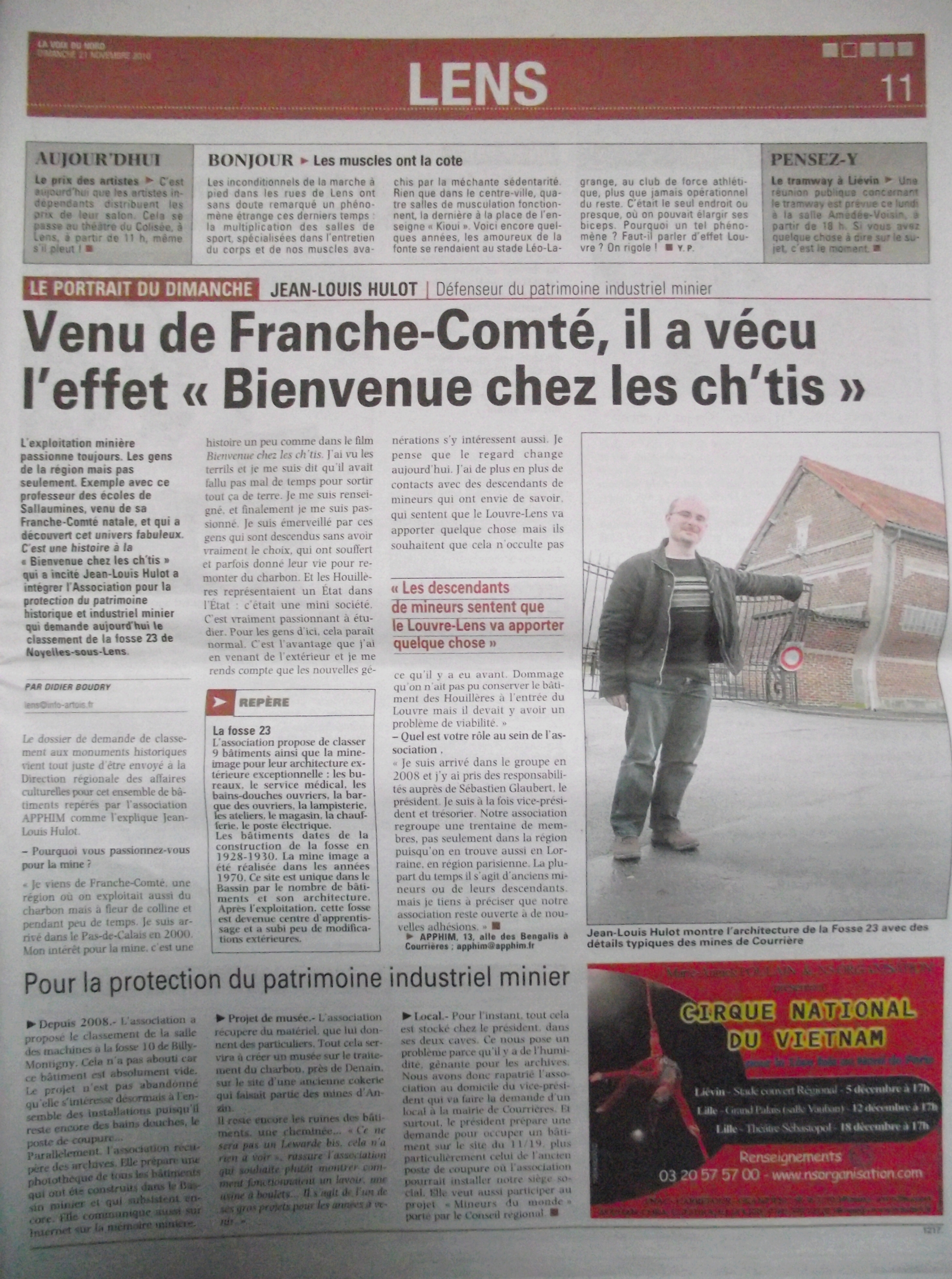 2010 Date de création : 03/04/2014 21:56 Catégorie : L'asso et ses actions - Revue de presse Page lue 7961 fois Généralités Partenaires Adhésion et dons Graines de Galibots Hommage de l'APPHIM aux morts du 10 mars 1906 Ecole Jules Ferry, Rouvroy Un grand mineur en maternelle Forum des associations à Courrières (62) Téléthon 2025 Banquet 2024 50ème anniversaire de la catastrophe de Liévin Banquet de Sainte Barbe 2025 L'épopée des gueules noires France 2 Vacances de Mineurs au 9/9bis Conférence SGN au CHM André de Marles 3 ans déjà! Norbert Gilmez, un mineur à l'honneur 76ème anniversaire de la grève de 1941 UNESCO, 5 ans, des sites en péril AG Université Populaire Mineurs du Monde Journées européennes du patrimoine à la fosse 9 Noeux les Mines pendant la grande guerre Assemblée Générale ACCCUSTO-SECI Sainte Barbe à Sains en Gohelle Commémoration Liévin 1974 Catastrophe ferroviaire de Thumeries Inauguration maquette cokerie Drocourt Disparition d'Olivier KOURCHID Exposition archéologie minière au 9/9bis Remise en route des machines du 9/9bis Commémoration Liévin 2018 Rue basse, rue haute Exposition 170 ans des Mines de Lens Exposition Le point du jour L'association Bassin Minier Patrimoine Mondial du Nord Mines de Ligny les aires Mines de Béthune Mines de Liévin Mines de Lens Mines de Courrières Mines de Drocourt Mines de Dourges Mines d'Ostricourt Mines d'Aniche Mines d'Anzin Mines de Vicoigne La Lorraine La cokerie La centrale thermique Cartographie Catastrophe de Courrières Installations minières Matériel du mineur Mines de l'Escarpelle Listing des mineurs de nos archives Préambule Productions par fosses Productions par groupes Le musée de la mine de Noeux les Mines (62) Le musée de la mine d'Auchel (62) Le musée de la mine de Bruay (62) Musée de la mine du Molay Littry (14) La maison du mineur La Grand Combe (30) Le pôle historique minier Gréasque (13) Musée du puits Couriot-Musée de la Mine de Firminy (42) Le musée de Lewarde : Centre Historique Minier (59) Les musées de Brassac les Mines et le puits des Graves (63) Musée Marcel Maulini Ronchamp (70) Le musée de la mine de Grande Synthe (59) Musée de la Mine de Buxières (03) Musée de la Mine Saint Eloy (63) Musée de la Mine de Messeix (63) Musée de la Mine La Machine (58) Musée de la Mine Blanzy (71) Musée de la mine d'EPINAC (71) Musée Mines de Fer d'Anjou (49) Musée de la Mine-Image de la Motte d'Aveillans (38) Le musée de l'école et la Mine de Harnes (62) Assemblée générale du 14/04/2015 Assemblée Générale 28/03/17 Exposition "il était une fois le 21" Ag 2018 des amis du Musée de l'Ecole et de la Mine Exposition "quoi de neuf au 9?" Si les cartes murales pouvaient parler Le musée Jean le Mineur (03) 2016, une présidente au musée Visite du musée Visite du Trésorier APPHIM Le musée de la Mine-Image (62) Portes ouvertes le 12/06/2014 Listing des archives Archives photographiques Listing des vidéos et autres Listing du matériel Planches d'exposition (hors expos APPHIM) Bruits de fond Bruits et lumières Lampe au chapeau Equettes Echos-mine Notre Mine-nuit et jour-équettes Nuit et jour Notre Mine Lumières sur la mine Tout venant Douai Mines Douai Minimes Coups de pic, coups de plume Relais Mineurs de France CdF Mag Notre Mine-Nuit et jour Tout Venant-Lumières sur la Mine Gazette de la potasse-Potasse magasine Gauhéria et Ferrovissime Rail et Industrie Broken Hill La catastrophe de Marcinelle Coup d'eau à la grande Bacnure (Belgique) En 68, le français était aussi mineur de fond L'adieu tchèque au charbon 2009 2010 2011 2012 2013 2014 2015 2016 2017 2018 2019 2020 2024 Prévisualiser... Imprimer...