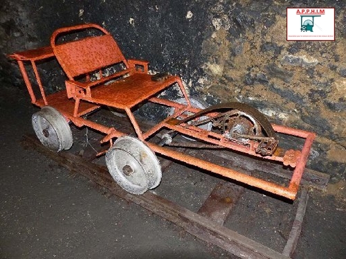Pédalo sur rails pour amener l'ingénieur ou le porion jusqu'au front de taille.