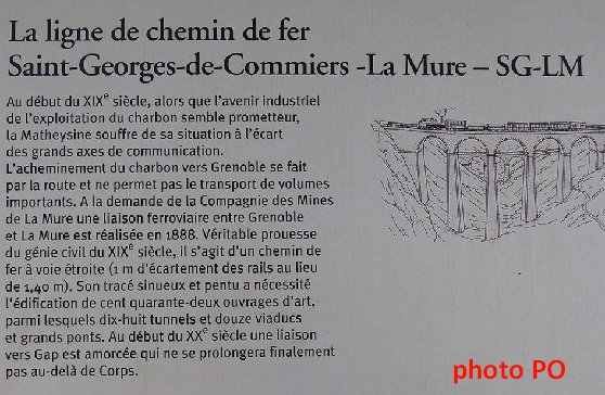 Il n'était pas question de descendre du plateau matheysin sans avoir vu le renommé Chemin de Fer de la Mure dont exceptionnelle est l'histoire puisqu'il fut, en 1906, le premier utilisateur mondial d'une ligne électrifiée ! Non seulement le "Train de La Mure" fut celui sans lequel ce précieux charbon n'aurait pas pu quitter cette région avec de telles facilités, mais il fut aussi celui qui, par la suite, promena les touristes au travers des 142 ouvrages d'art (dont 6 grands viaducs et 18 tunnels) qui jalonnent son tracé de St-Georges-de-Commiers à Corps via La Mure.