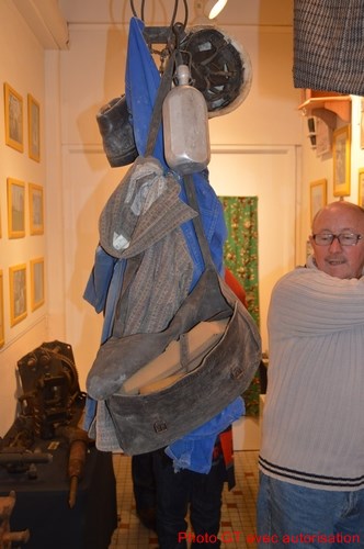 Les ̎loques ed fosse ̎, le béguin, le casque, la musette, le boutelot du Mineur. Photo GT