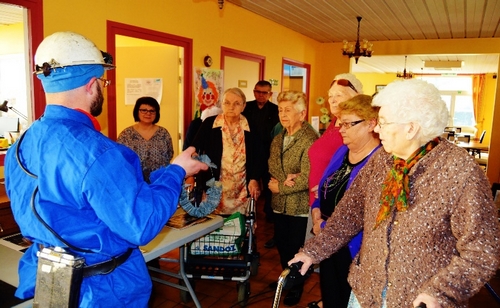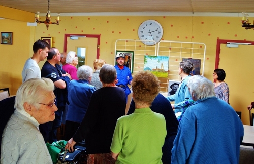 L’exposition ‘’Mine d’arts’’ organisée pendant tout le mois de février à la médiathèque de COURRIERES par l’APPHIM et le Club de peinture Jules et Émile Breton a connu un grand succès car il y a eu de très nombreux visiteurs. L’idée nous est venue de présenter les mêmes œuvres à des personnes âgées (à mobilité réduite pour la plupart) au Foyer-logement Guy Mollet de la même ville. L’initiative s’est révélée positive car la plupart des résidents sont venus écouter les explications de Jean-Louis HUOT, Président de l’APPHIM, à propos des peintures et dessins des artistes. A la fin de l’exposition, celui-ci a aussi présenté quelques objets relatifs à la Mine (outils divers, casques, lampes, taillettes, gaillettes, boulets…) aux mamies très attentives (il n’y avait que quelques hommes) qui ont posé de nombreuses questions car beaucoup d’entre elles étaient femmes de Mineur.