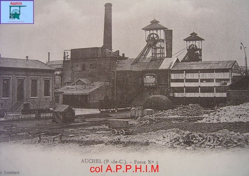 Le fonçage du puits 5 sur la ville d’Auchel commence en 1872 en même temps que le 5 bis associé. Le houiller est atteint à -135 m. Lors du creusement on retrouve les mêmes terrains mouvants qui ont produit la catastrophe du 2 mais on sait maintenant y faire face avec la méthode Kind-Chaudron. Les chevalements de 15 m de haut (molettes) sont entièrement recouverts dans un bâtiment assez atypique.