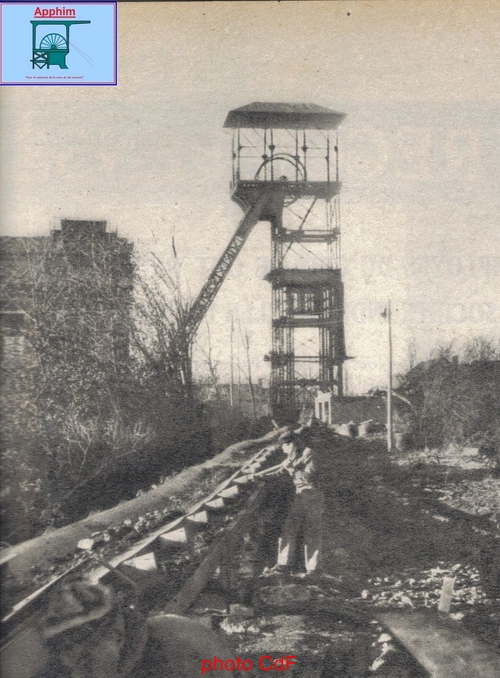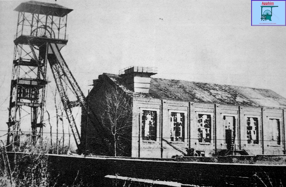Le chevalement en 1955, les vitres et la toiture ont été soufflées par l'explosion
