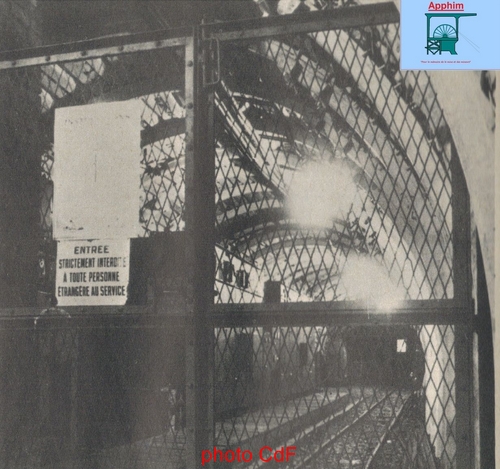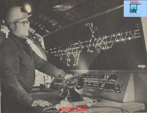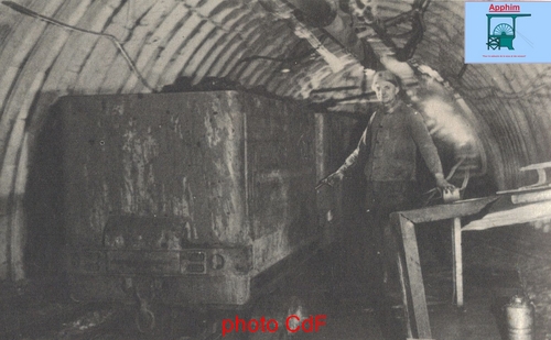 La recette de ce nouvel accrochage est équipée pour les berlines de 3000 L. Elles sont encagées automatiquement par pousseurs pneumatiques commandés à distance. Le fond et le jour sont synchronisés par signaux lumineux. La plupart des parois de cette recette ont été gunités c'est à dire cimentés par projection de ciment grâce à un canon spécial.