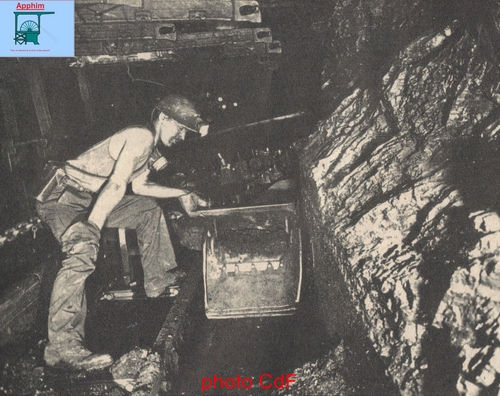 L'avancement journalier est de 1,71 m en moyenne. Les tailles 245 et 258 sont exploitées de la même manière avec 2 à 2,10 m d'avancement. Le mineur muni de la houe est derrière le blindé situé à 10 12 m du front de taille sous le soutènement ce qui évite les accidents.