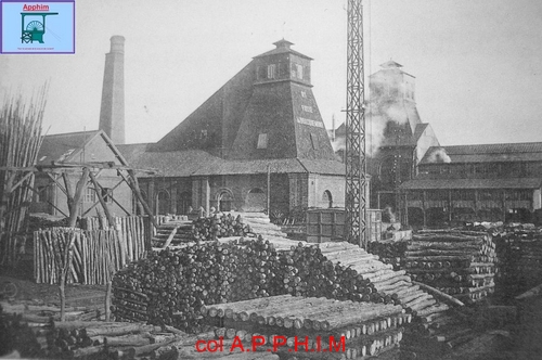 Puits 1 et 1bis vers 1900, au premier plan le stock de bois de mine