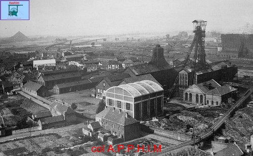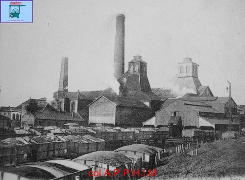 Puits 3 et 3bis en 1900, au fond les usines