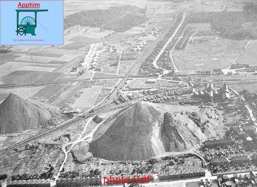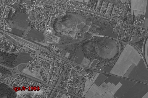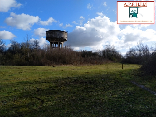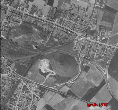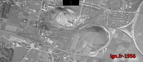 Le terril 40 au premier plan et le château d'eau qui se trouvait entre les deux terrils