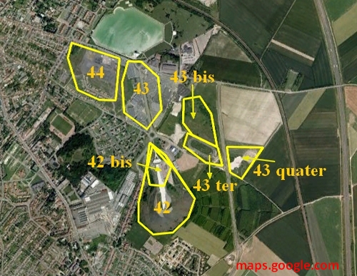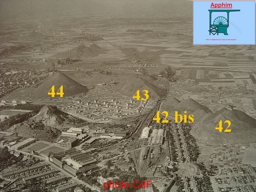 Les terrils 42, 42bis, 43, 43bis, ter et quater et 44 sont issus de l'activité du puits 3 mais aussi des usines de Noeux.