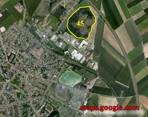 Le terril 45 ou Nouvelles Usines de Noeux est édifié à partir de 1927 près des Usines de la Compagnie.
