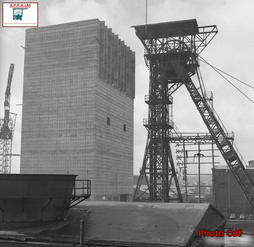 En 1953, le chevalement en béton est remplacé par un bâtiment de 25,5 m de haut qui abrite la machine d’extraction de 3.500 ch installée directement au-dessus du puits. Mais l’extraction n’est pas arrêtée pendant les travaux de démantèlement et de reconstruction (pose de molettes provisoires au sol, directement sur le puits).