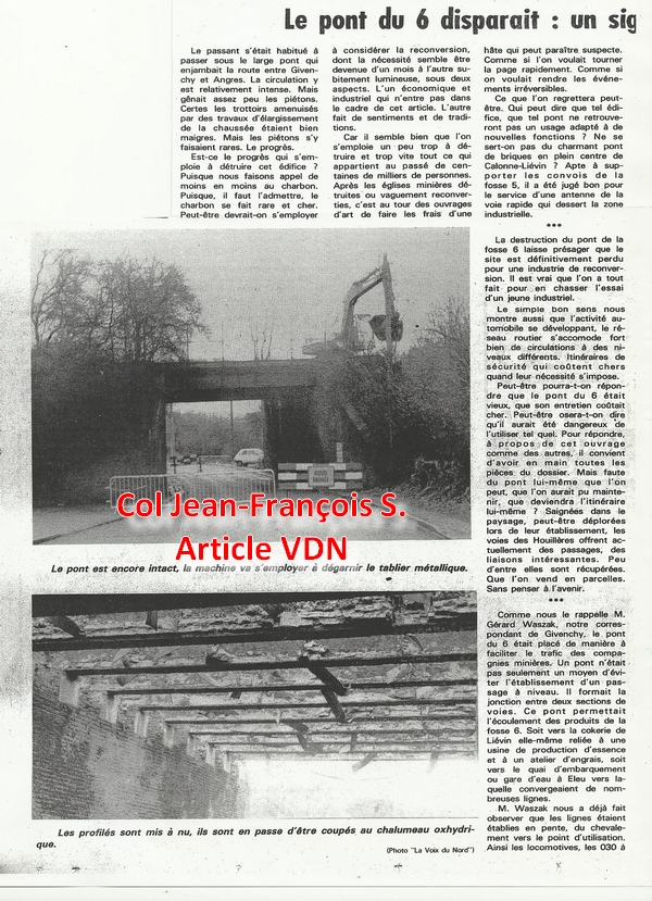 En 1971, le chevalement et la machine d'extraction du 6 bis sont démontés pour équiper le 15 de Méricourt (Groupe Hénin-Liétard). Le faux-carré restera en place avec des petites molettes et un treuil pour entretenir le puits. Le 6 bis est entrée d'air et le 6, avec des ventilateurs Berry provenant de la fosse 4 bis de Dourges (Groupe Hénin-Liétard), devient retour d'air pour le siège 7 de Liévin.
