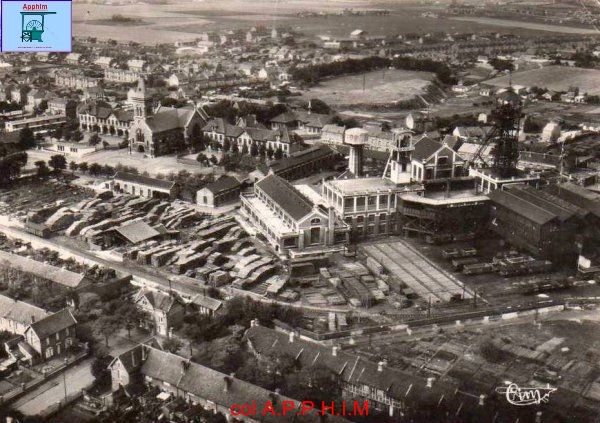 L'ensemble du site dans les années 50 avec la fosse, les écoles et l'église