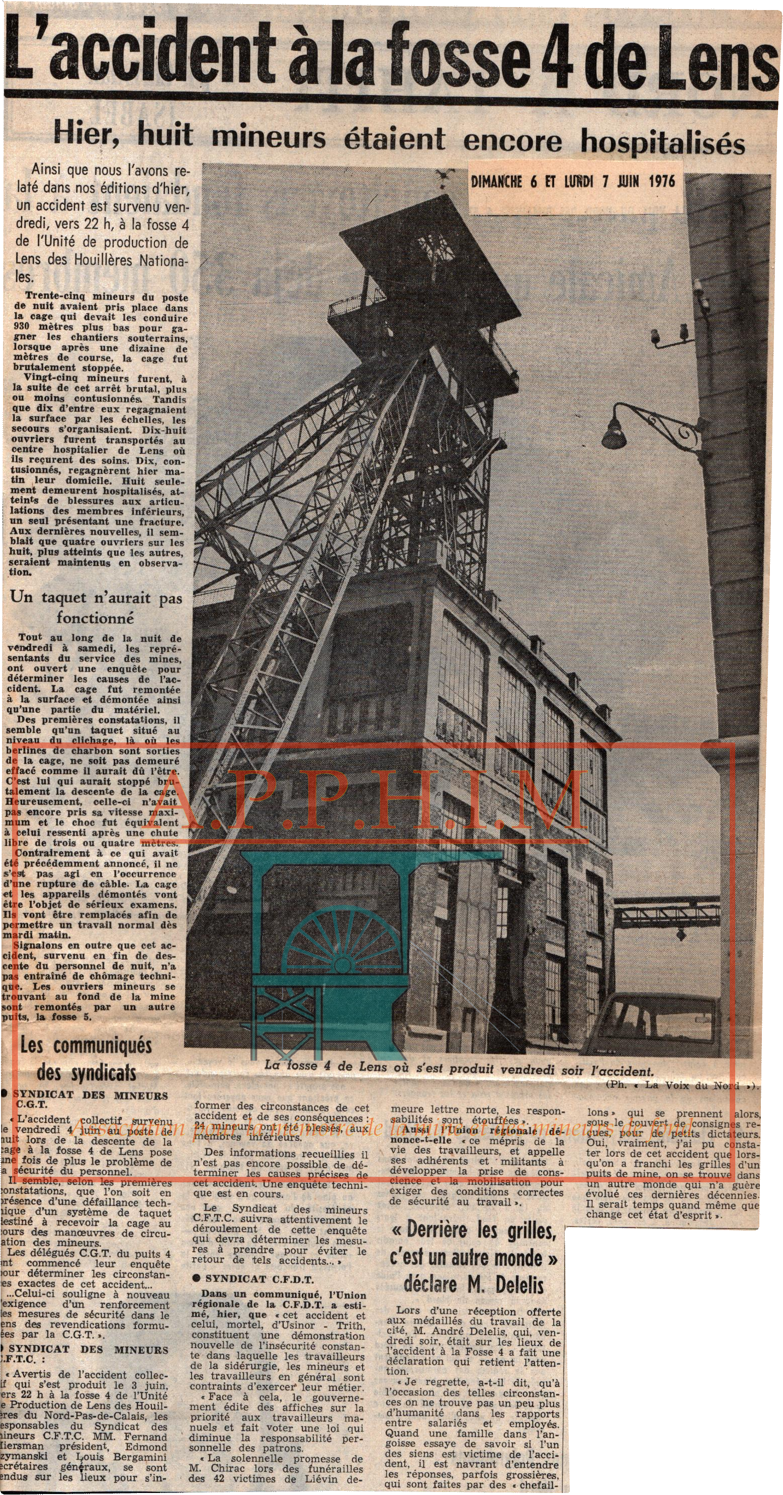 Article de presse sur la catastrophe de 1971, col APPHIM