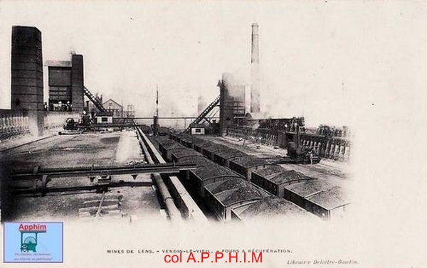 La construction de la cokerie remonte à 1892. La Compagnie construit 30 fours à coke près du rivage. La production augment rapidement. Dès 1913, 564 fours sont en activité. C'est la plus grosse cokerie de France à cette époque. Entièrement détruite lors de la première guerre mondiale, elle est reconstruite progressivement à partie de 1919. Une batterie mi-complète de 70 fours fonctionne dès 1919. Les trois batteries d'avant guerre sont réparées et une quatrième de 70 fours entre en activité en 1926.