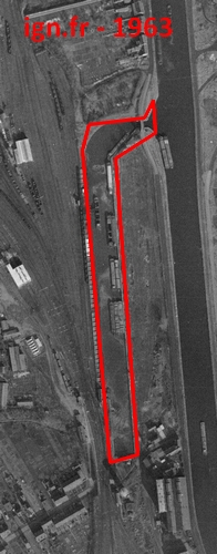 Le rivage est arrêté en 1983 et les installations détruites en 1984. Il est isolé du canal en 1999. Abandonné, il est mis en sécurité, comblé et engazonné en 2002-2003. Une entreprise de palettes en bois, incendiée, occupait le site. Il restait deux bâtiments abandonnés et saccagés sur le site en 2012. Ils ont été détruits depuis.