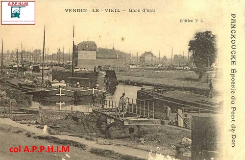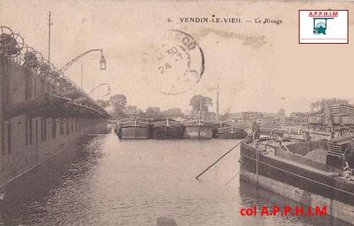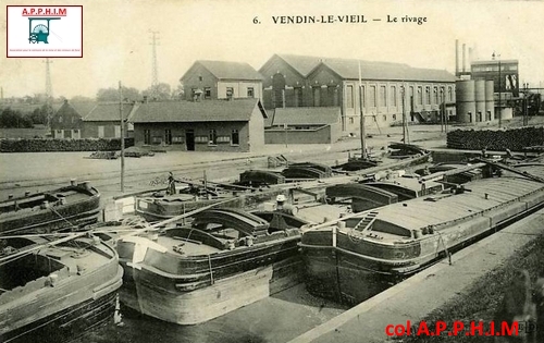 La gare d'eau ou rivage de Vendin le Vieil est construit 1873. Il est situé à proximité des usines de la Compagnie : lavoirs, cokerie et centrale. Il est parallèle au canal de la Deûle, une sortie en permettant l'accès. Une voie ferrée reliant le rivage aux usines et aux fosses de la société des mines de Lens arrive en à l'Ouest à 8 mètres au-dessus du niveau d'eau.