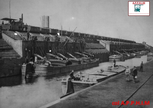 Avant 1918, les wagons de charbon étaient soulevés par une grue à vapeur, inclinés et directement déversés dans les péniches stationnant dans la gare. Le rendement était de 5000 T/J en moyenne.