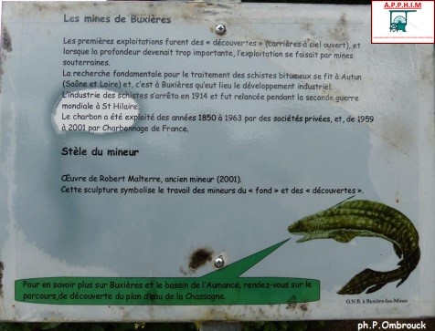 L’information est même bien visible. Et tout au fond dans les arbres, la cheminée du puits Méglin…