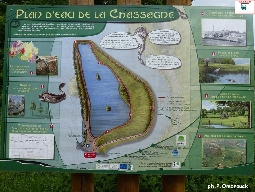 Si une commune méritait d’être surnommée « les Mines », c’était bien celle-là, tant elle était entourée d’affleurements de schistes bitumineux et de houille. Etant de passage à Noyant d’Allier, je me devais de l’inscrire à mon programme, et m’en félicite encore car non seulement j’ai découvert une région riche en sites d’exploitation du charbon (affleurements, descenderies, puits, mines à ciel ouvert), mais j’ai aussi été accueilli par une équipe de bénévoles résolus à pérenniser la mémoire du passé minier de leur secteur. Philippe ROUILLY, le Président de cette association, n’est autre que l’auteur de l’excellent livre « de BUXIERES-LA-GRUE à BUXIERES-LES-MINES – de Saint-Eloy Nord à l’Aumance », ouvrage traitant de cette épopée et qui a reçu le prix Achard Gardette 2013 décerné par l’Académie des Sciences, Belles Lettres et Arts de Clermont-Ferrand !
