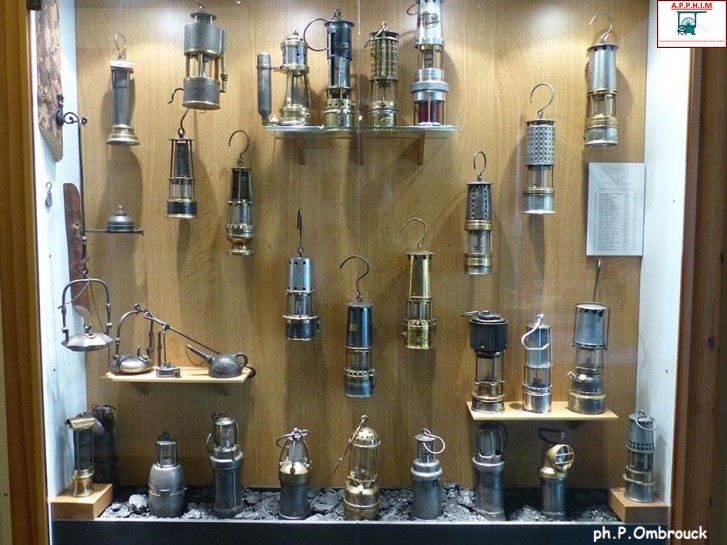 Exposition de lampes diverses de mineur Chevalement vu de bas en haut