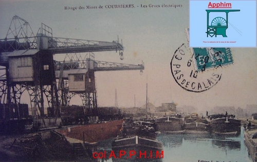 Elle relie aussi son rivage à la gare de Billy-Montigny par un embranchement particulier. En 1877, elle expédie 185880 T par bateaux et en 1937, 695228 T. En 1900, il y a deux modes de chargement. Le premier qui sert aux charbons classés avec des grues tournantes, système Chrétien. Elles chargent des caisses en bois d'une tonne stockées sur des trucks directement dans les bateaux. L'autre système est par rails avec des wagons de 3 T. La caisse pivote autour de l' arête supérieure du bateau puis elle est soulevée par un élévateur par le côté opposé. Le verrou s'ouvre et les charbons glissent dans le bateau après passage dans une trémie. Des treuils font mouvoir un train complet de 30 wagons. Une chaîne de rouage sert à faire avancer les bateaux. En 1929, la production de la Compagnie est de 4 millions de tonnes ce qui sature le rivage. De grands travaux sont entrepris avec la suppression de l'écluse de Courrières, un nouveau pont métallique est construit à proximité de la centrale, une passerelle pour le passage de l'électricité qui alimente les sièges de la Compagnie. De nouveaux quais sont aménagés, le canal est approfondi à 4,75 m de profondeur, la largeur portée à 60 m sur la longueur du rivage. Le rivage est long de 400 m avec 120 m de largeur. En 1937, le rivage expédie 685228 T Avant la seconde guerre mondiale, la capacité du rivage était de 7000 T/J. Les quais et installations ont été détruites dans les années 1990 après leur arrêt en 1989.