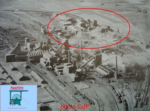 En rouge l'usine en dessous, la cokerie des Mines de Courrières