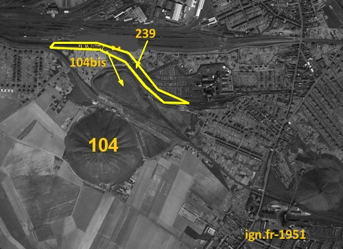 Le terril 104bis est un terril plat de schistes rouges et noirs. Il a été exploité et un lotissement en a pris la place. Caractéristiques : 100000 m3, 6.2 ha.