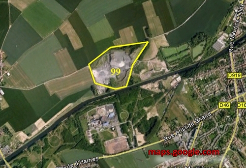 Le terril 99 est issu du fonctionnement de la centrale des Houillères dite de Courrières. C'est un terril de cendres de forme conique tronquée. Caractéristiques: 2479000 m3 et 30 m de haut. Il est en cours d'exploitation.