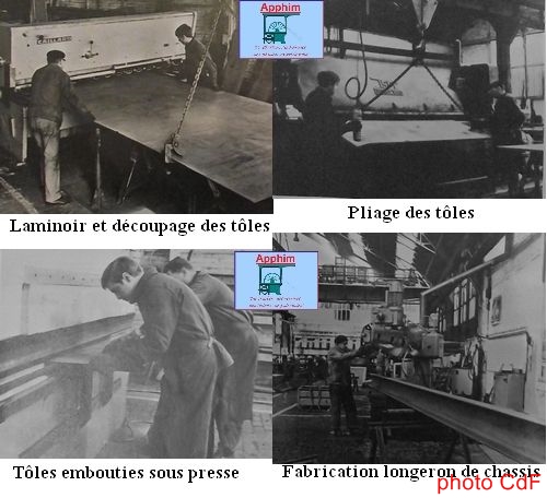 Les tôles sont découpées au gabarit au moyen d'une cisaille guillotine. Une presse-plieuse à volet donne la forme aux pièces formant la caisse. Une presse-plieuse hydraulique de 80 T emboutit les pièces au gabarit pour former les goussets de renfort de caisse. Une autre partie de la chaîne est réservée à la fabrication des châssis. Un longeron en fer spécial wagon de 250 m est percé pour devenir un longeron de châssis.