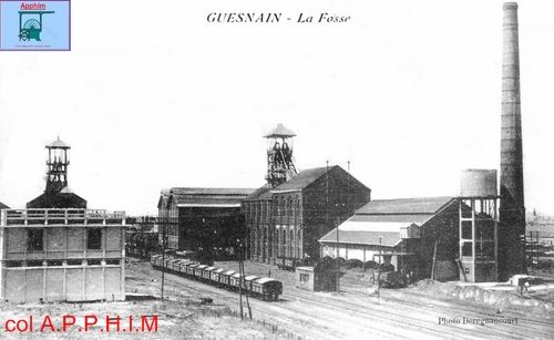 Les travaux du puits 1 commencent en 1865 avec un diamètre de 4 m le long de la grande route de Douai à Aniche sur la commune de Guesnain. Le charbon est atteint à 172 m de profondeur. Le cuvelage est en bois de 6,80 à 72,60 m. Les accrochages étaient situés à 207, 257, 314, 414, 464 et 514 m de profondeur. Le puits 1 possède un chevalement en bois.