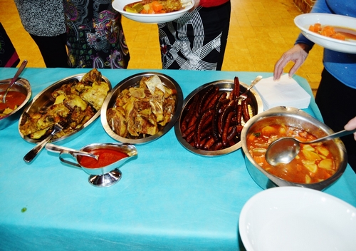 Chérifa BOUDALI et Jed BARKATI, les deux cuisiniers bénévoles aidés par Sylvette TYRAKOWSKI et Amar BOUDALI, n’ont vraiment pas chômé pour préparer le couscous royal traditionnel (quel délice !) précédé et suivi d’une soupe et d’une pâtisserie tunisiennes vraiment originales. Préparer un repas de cette qualité à plus de 50 personnes est un tour de force qu’ils ont réussi avec un plus grand professionnalisme et toujours avec le sourire. Un grand merci à eux ! Chapeau, les cuistots !