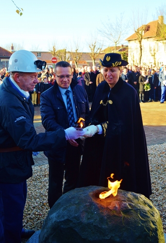 Le Maire de LIÉVIN et la Préfète du Pas-de-Calais rallument la flamme du souvenir. Photo GT Le dépôt de gerbes accompagné par l’Harmonie de LIÉVIN est toujours un moment émouvant. Photo GT