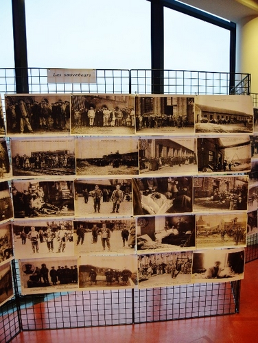 Jean-Louis HUOT, Président de l’APPHIM, dans son discours inaugural a précisé que si cette exposition a pu être organisée, c’est grâce aux bénévoles de l’association et notamment Laurence VINCENT, Gérard BUSTIN, Daniel MILAN, Jed BARKATI, André DIEU et Georges TYRAKOWSKI qui l’ont bien aidé. Plus de 150 gravures (copies de photos d’époque, unes de journaux, affiches, tableaux, dessins, …) accrochées un peu partout dans la Médiathèque François Mitterrand, quelques outils de Mineur d’époque et un diaporama tournant en boucle et relatant les faits (l’attente, la remontée des corps, les obsèques, les survivants, les grèves, les luttes avec la troupe,…) ainsi que les conséquences (avancées sociales et techniques) ont été proposés aux visiteurs qui sont venus nombreux et qui ont bien apprécié.