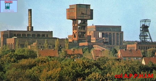 2000 personnes travaillent sur le siège de Folschviller en 1958. le puits 1 a une hauteur de 58 m et le puits 2, 42,48 m.