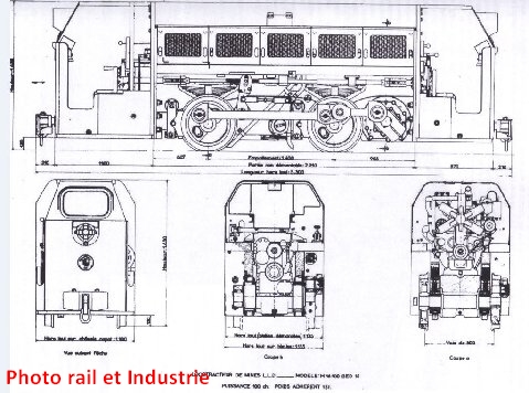 LLD 16100 BED15 de 100 ch en essai à l'usine de Bonneuil avant livraison. Peu auparavant Batignolles-Chatillon et LLD (ex-Marchak) avaient fusionné d'où la grande ressemblance entre les deux machines présentées ci-dessus. Le plan ci-dessous montre bien qu'il s'agit d'un matériel pour voie de 800
