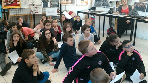 Cette rencontre qui ne devait durer qu’une heure et demi a finalement pris tout l’après-midi vu l’intérêt et l’investissement de la classe de M. Lemaire. André et Gérard n’ont pas manqué de parler de leurs souvenirs du fond, du matériel et de son utilisation en réponse aux questions des élèves qui avaient bien préparé cette intervention en amont.