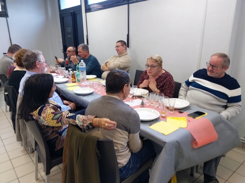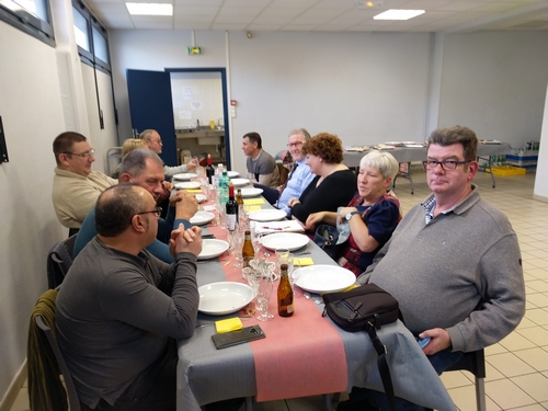 En ce dimanche 1er décembre, le foyer Anne Frank, rue Charles Quint à COURRIÈRES, gracieusement mis à la disposition de l’APPHIM par la Municipalité était encore bien rempli pour accueillir les 40 inscrits à notre repas. Hélas, notre ami cuisinier Jed BARKATI étant retenu par d’autres obligations, nous sommes passés par un traiteur. Le traditionnel couscous a encore fait l’unanimité.