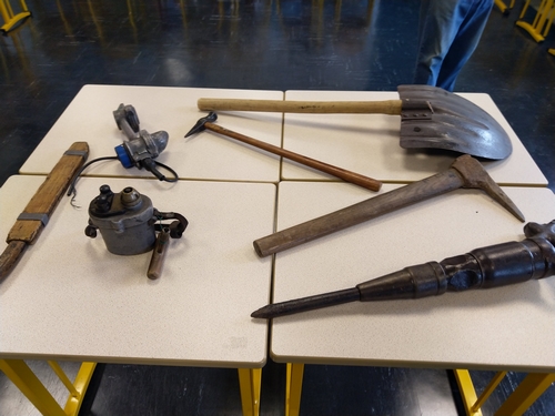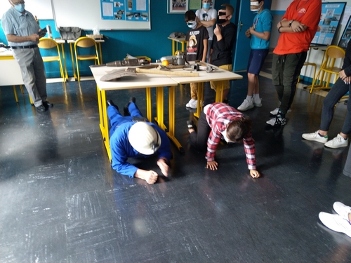 Ils ont pu se rendre compte de la « légèreté » des outils des mineurs surtout quand on se retrouve à quatre pattes sous une table ; hauteur de table qui correspond à l’ouverture moyenne des veines de charbons du gisement Nord Pas-de-Calais.