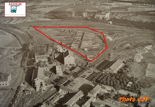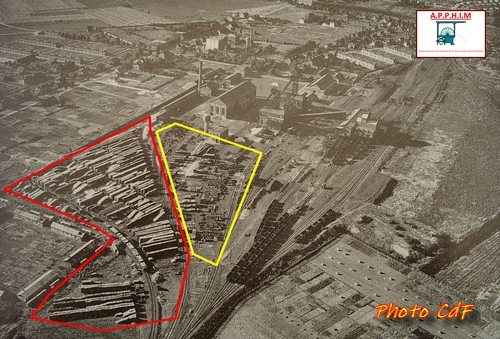En rouge parc à bois, en jaune parc à stock de la Fosse 7/7bis 1949