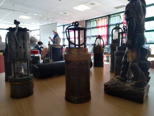 Notre présence, au mois d’avril, avait charmé notre auditoire car beaucoup sont revenus écouter les explications de Jean-Louis HUOT, Président de l’APPHIM, qui présentait un nouveau diaporama sur l’histoire des mines de charbon en Nord-Pas de Calais. André DIEU, ancien mineur, a également fait part de son expérience au fond de la mine. Comme toujours, André a raconté ses fameuses anecdotes qui n’ont pas manqué, une fois encore, de captiver l’auditoire.