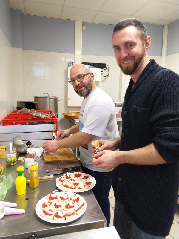 Préparatifs et cuisine avec Jed, Chérifa, André, Gérard, Marie-Jo et Mathias