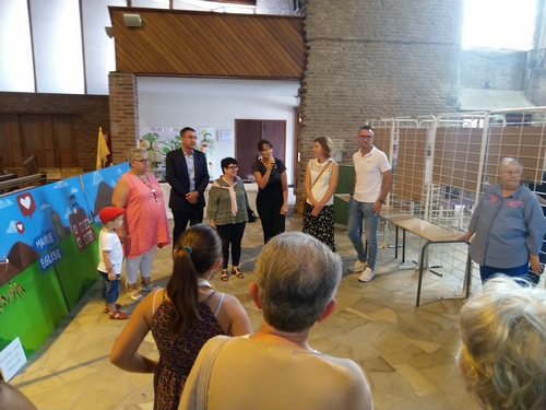 Les travaux réalisés par les écoles, les centres de loisirs estivaux et un atelier de sérigraphie sur tissu agrémentaient la déambulation dans la nef de l’église.