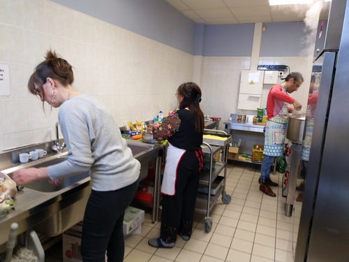 Dès potron-minet, une fourmilière de bras s’est activée pour permettre le bon déroulement de ce temps fort de notre association : Jed, Chérifa, Jean-Louis et Aline en cuisine ; Gérard, Henri, Didier, Sylvie, Hervé et Mathias en salle.