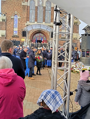 Une fois la flamme rallumée, c’est la lente énumération des noms des mineurs tués dont les portraits ont été apportés au centre de la place, face à la tribune officielle. La cérémonie s’est ensuite poursuivie par le dépôt de 51 gerbes, une minute de silence et les discours.