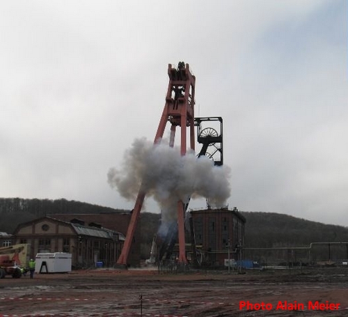 Malgré des tentatives de sauvegarde, le 10 décembre 2007 à 12h50, le chevalement du puits 4 tombe ; la fin d'une époque industrielle.